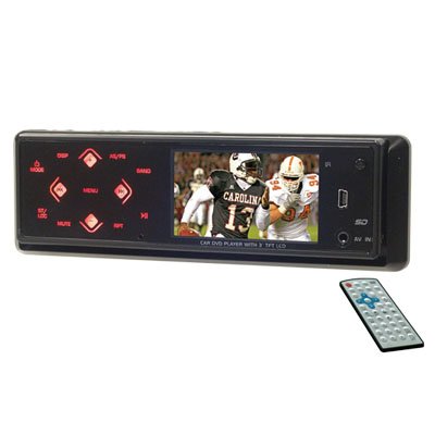 ? 3" Actual Diagonal Digital TFT Screen? 16:9 Widescreen Format? Touch Sensor Buttons? AM/FM/MPX Radio Tuner ? 30 Preset Memory Radio Stations? USB/SD Card Interface ? MP3/MP4/AVI/JPEG Format Reader? DVD/DVD ± R/DVD RW/VCD/SVCD/CD/CDR/CDRW Disc Compatible? Auto Loading Deck Mechnism? Stop, Play, Pause, Zoom, Slow Motion and Repeat Function? Last Position Memory? ESP Function? Full Function Remote Control? 2 Video Output? Front/Rear & Subwoofer Preamp Output? Front 3.5mm Audio/Video Input? Rear RCA Audio/Video Input ? Rear Camera Input (camera not included)? 4 Channel High Power Output? Plug-In Harness3.2" DIGITAL TFT In Dash Monitor, DVD/CD/MP3/MP4 Player, AM/FM/MPX Radio, 30 Preset Stations, USB/SD Card Interface, Flip-Down Detachable Front Panel Specifications